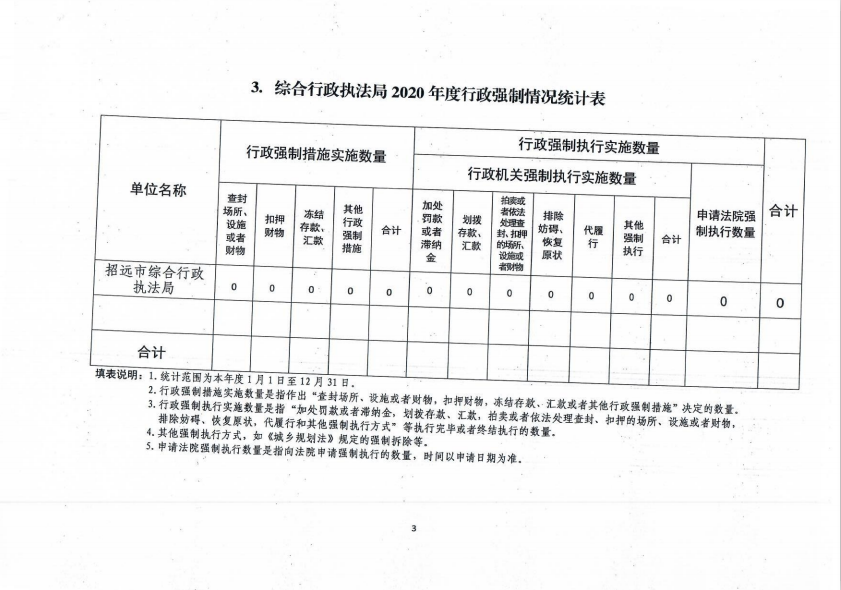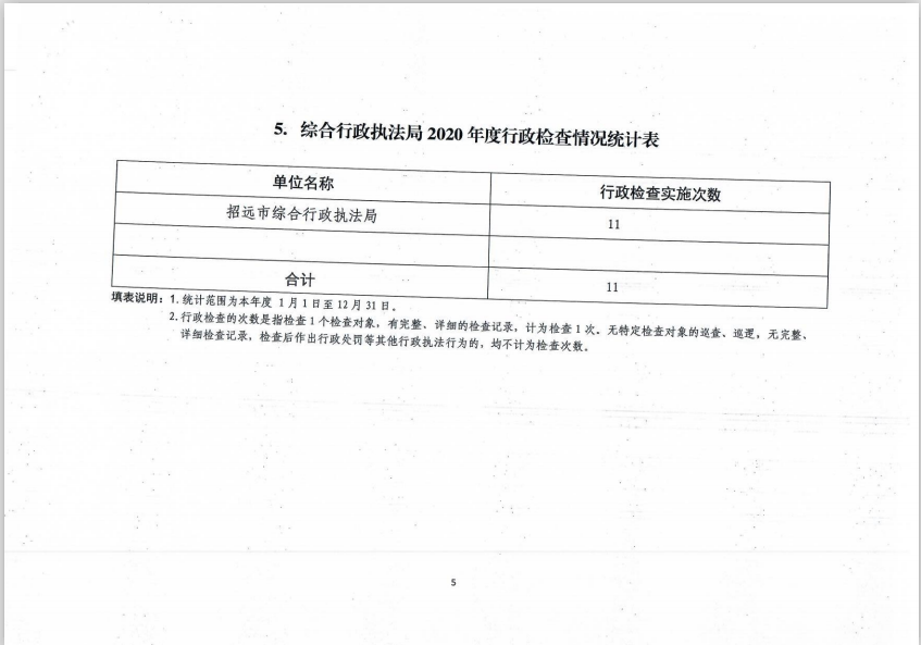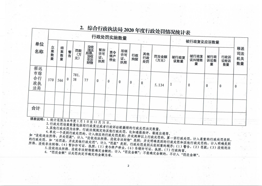 招遠市綜合行政執(zhí)法局2020年度行政執(zhí)法統(tǒng)計年報