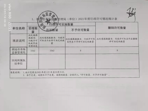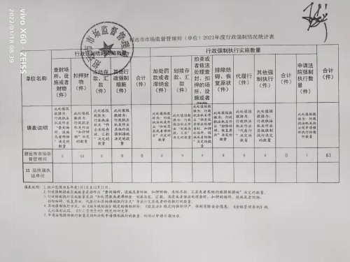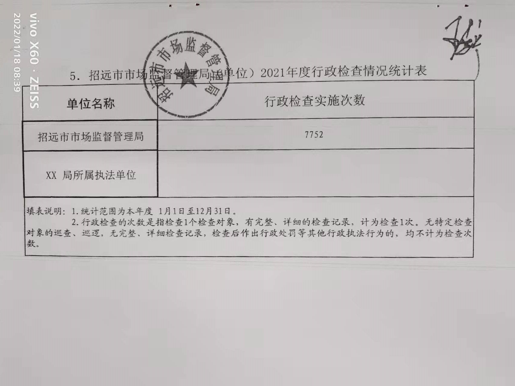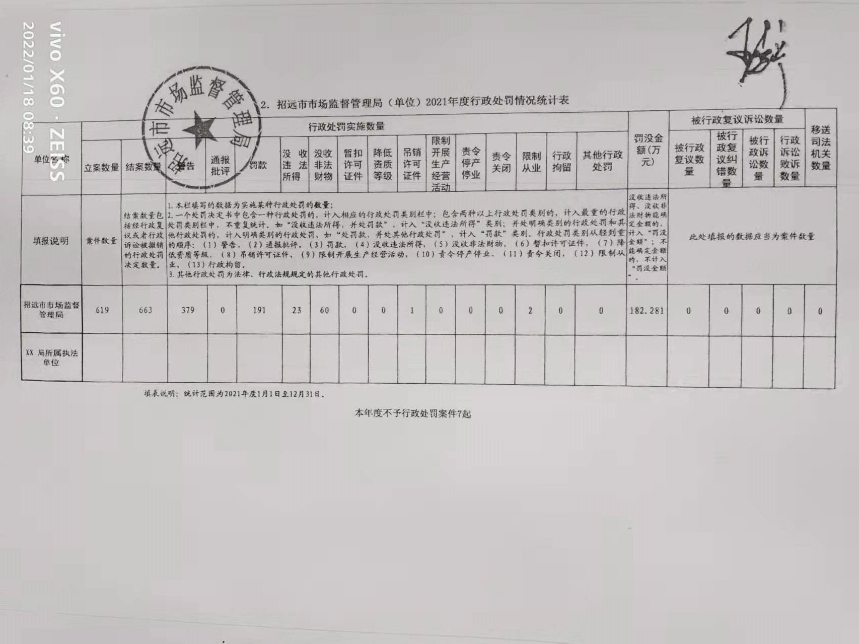 現將招遠市市場監督管理局2021年度行政執法統計年報公示如下: