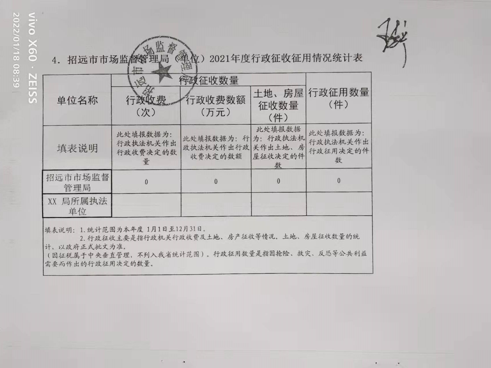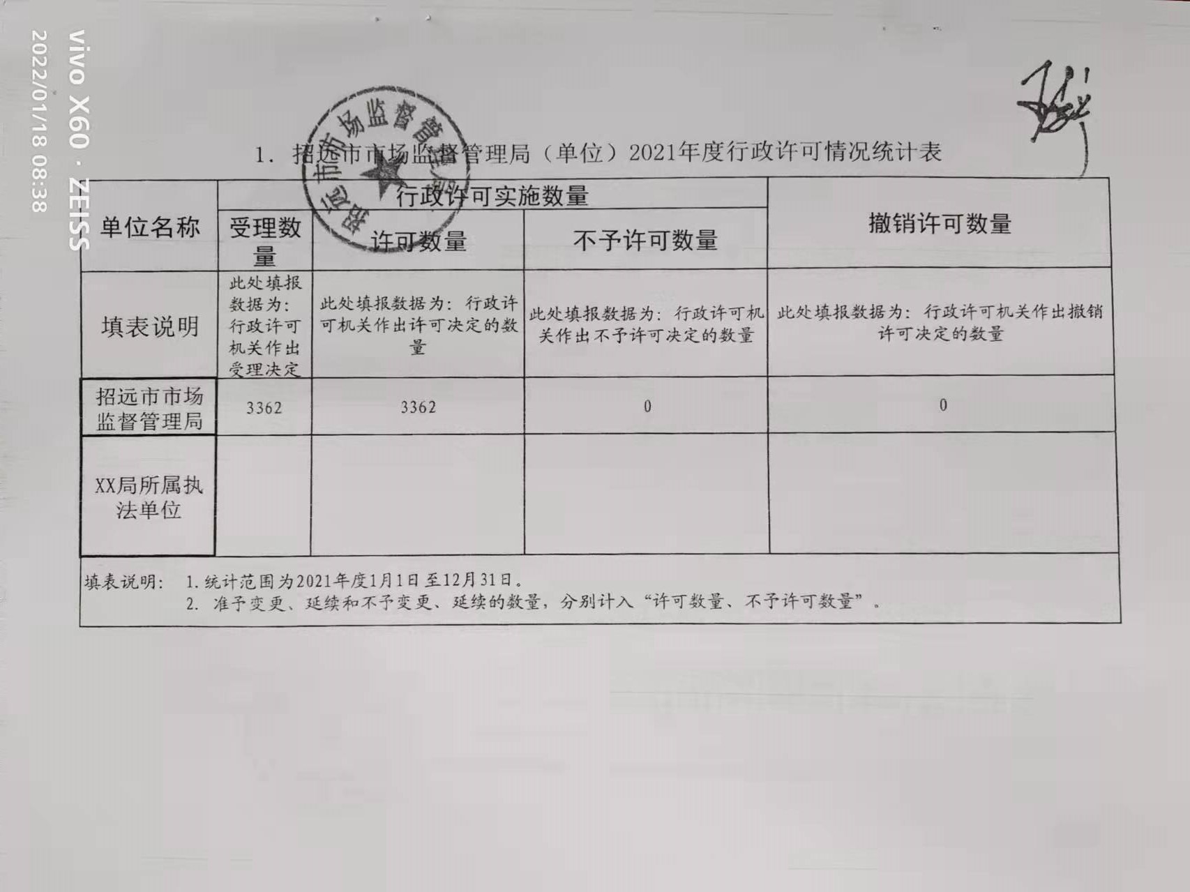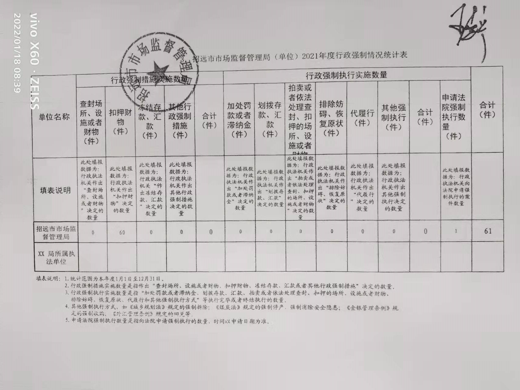 現將招遠市市場監督管理局2021年度行政執法統計年報公示如下: