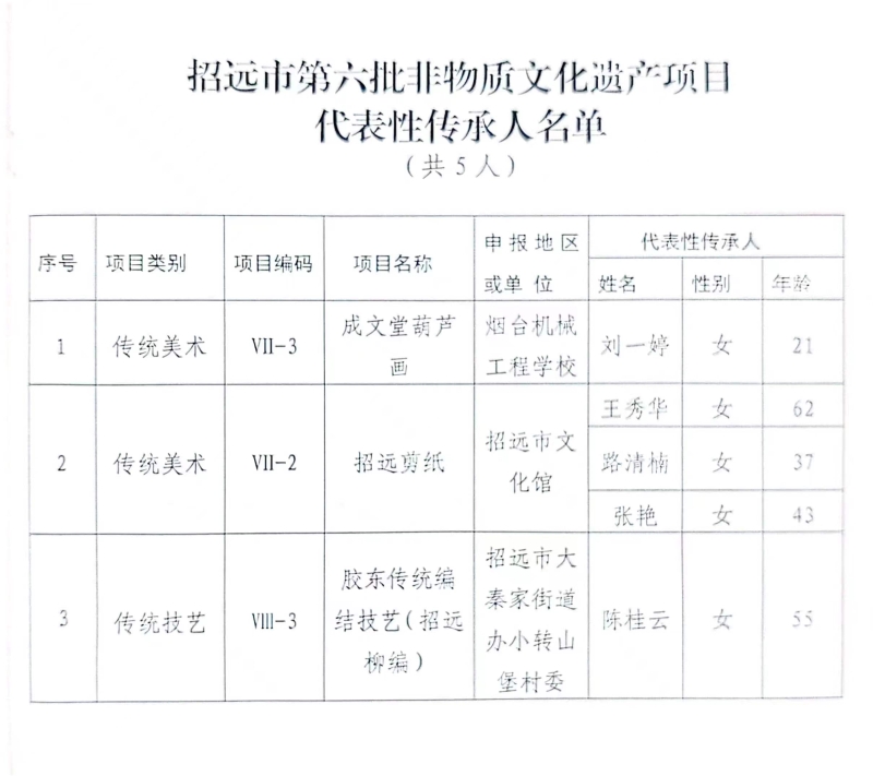 附件:招遠市第六批非物質(zhì)文化遺產(chǎn)項目代表性傳承人名單