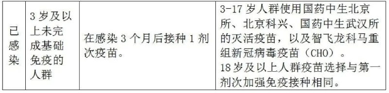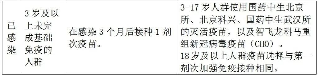 (二)已感染且未完成基礎免疫的人群,可在感染3個月后接種1劑次疫苗。