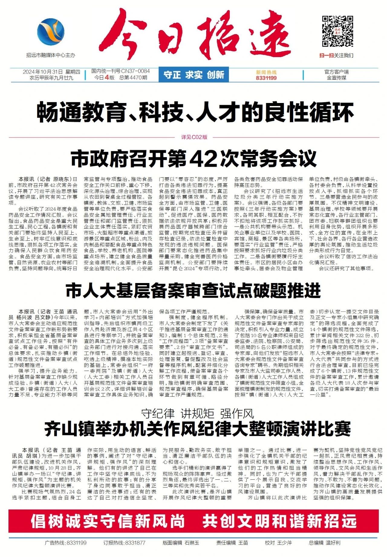 【今日招遠】市政府召開第四十二次常務會議