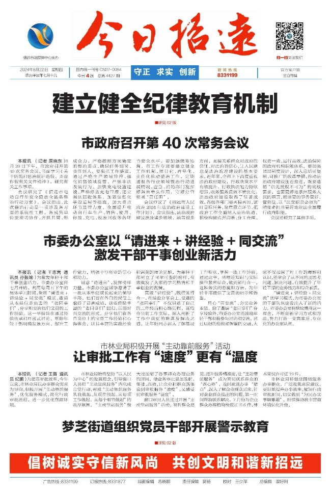 >政務公開>會議公開>市政府會議>媒體報道>報紙報道
