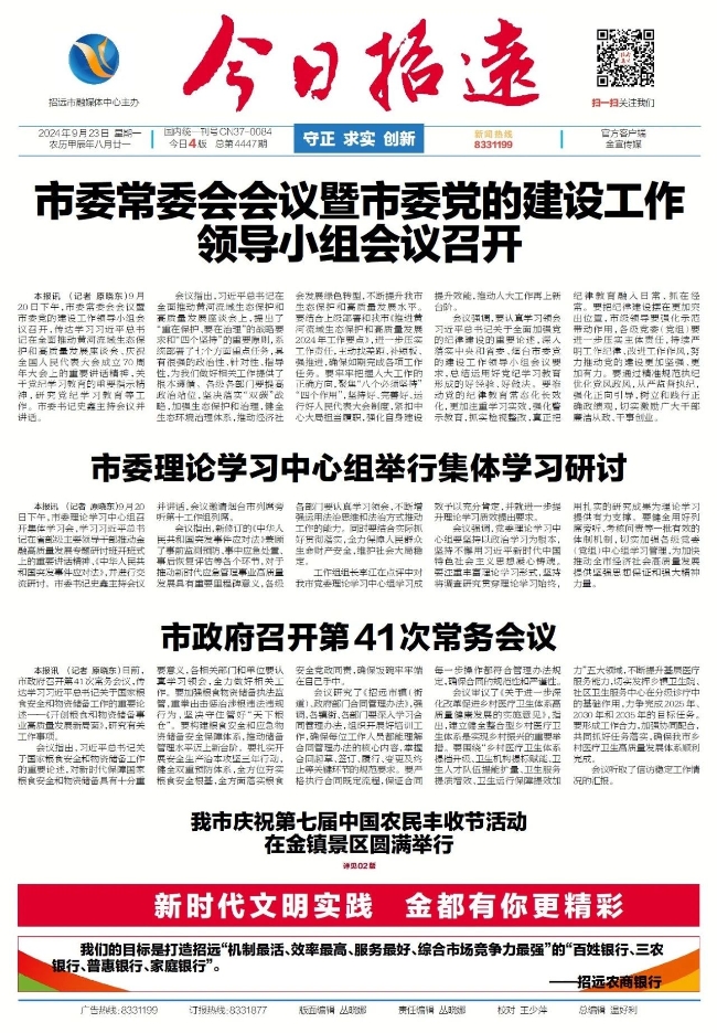 發(fā)布機構(gòu): 招遠市政府辦 組配分類: 報紙報道