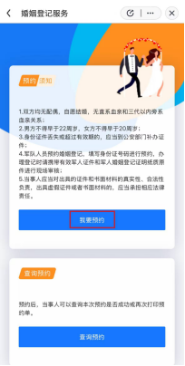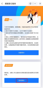 4.提交預(yù)約后,還可以返回“婚姻登記服務(wù)”頁面,點(diǎn)擊“查詢預(yù)約”了解預(yù)約審核結(jié)果。
