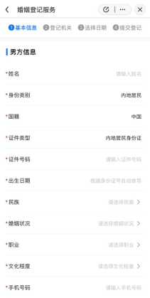 3.根據(jù)頁面提示填寫男女雙方信息,就近選擇登記機(jī)關(guān)、預(yù)約日期及時(shí)段。