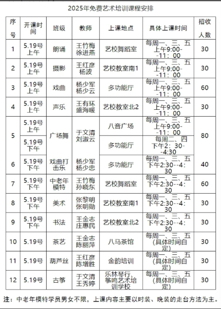 5.輔導內容:國畫、戲曲、旗袍秀、書法、攝影、廣場舞、朗誦、聲樂、戲曲打擊樂、古箏、茶藝、電吹管共12個門類.