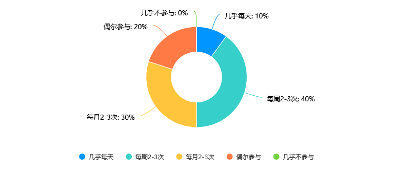 □ 幾乎每天 □ 每周2-3次 □ 每月2-3次 □ 偶爾參與 □ 幾乎不參與