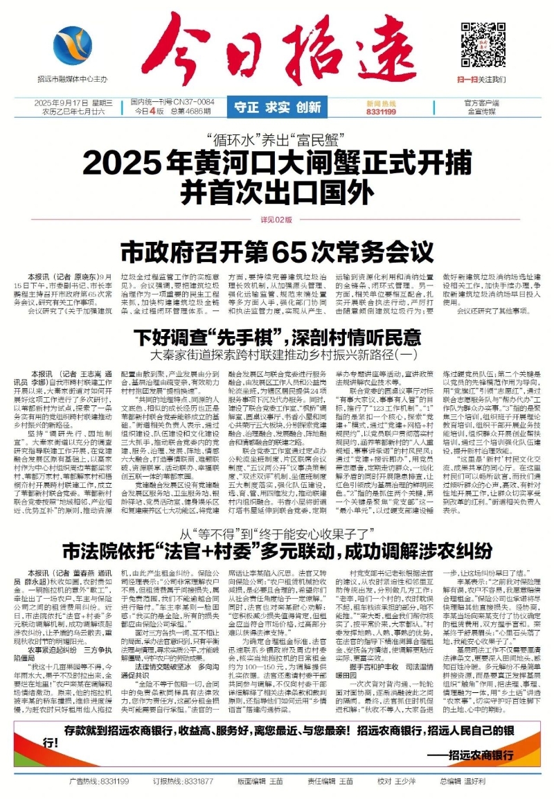 發布機構: 招遠市政府辦 組配分類: 報紙報道